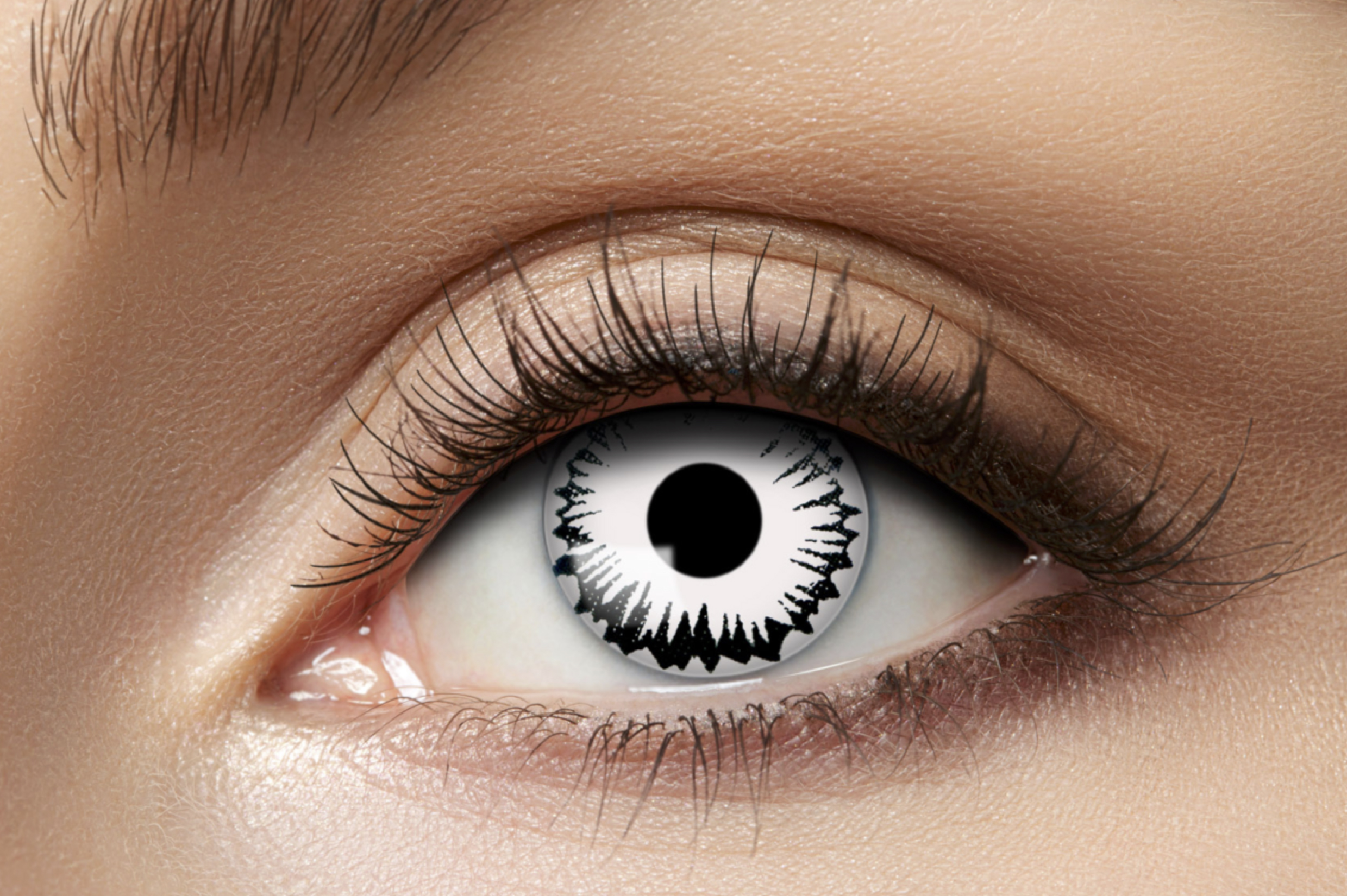La confezione contiene un paio di lenti a contatto trimestrali di colore bianco da lupo, dall’effetto scenografico e realistico.Tutte le nostre lenti sono realizzate in silicone hydro Gel per garantire un confort ottimale all’occhio in totale sicurezza.Ogni lente infatti è certificata per la sicurezza dell'occhio, previo corretto utilizzo e applicazione delle normali norme igieniche. Il tema della lente circonda quasi interamente l'iride mostrando il colore e l'effetto desiderato, sicuramente d’impatto! Risulta essere così perfetta per travestimenti teatrali e in momenti di rappresentazioni, per un travestimento di Carnevale, per Halloween o per un cosplay, ideale per shooting fotografici, attori e feste in maschera!Disponiamo di un vastissimo assortimento di lenti giornaliere, mensili, trimestrali e annuali. Ogni lente riproduce con estrema fedeltà il disegno illustrato e l’effetto desiderato.Lenti a contatto monocromatiche, multicolore e dalle splendide sfumature. Scopri le lenti speciali con decine di temi ammalianti: occhi di animali, horror, fantasy e tanto altro.Festa di Halloween alle porte? Vuoi dare al tuo sguardo un plus accativante? Scegli le lenti dai temi horror per avere inquietanti occhi sanguinolenti, con ragnatele, demoni, e vene che incutono timore come le fiamme dell'inferno! Scopri inoltre le lenti effetto cecità, per un effetto full screen e quelle UV per brillare nel buio della notte, e per non passare inosservato!Apri gli occhi… sorprendi e divertiti con colori unici!Il cambio di colore, specie sugli occhi chiari e particolari è estremamente evidente, anche da lontano. Con le nostre lenti e gli accessori giusti l’effetto è assicurato,divertiti a creare combinazioni spettacolari abbinando le lenti a contatto con ciglia finte, unghie, glitter, parrucche e accessori!